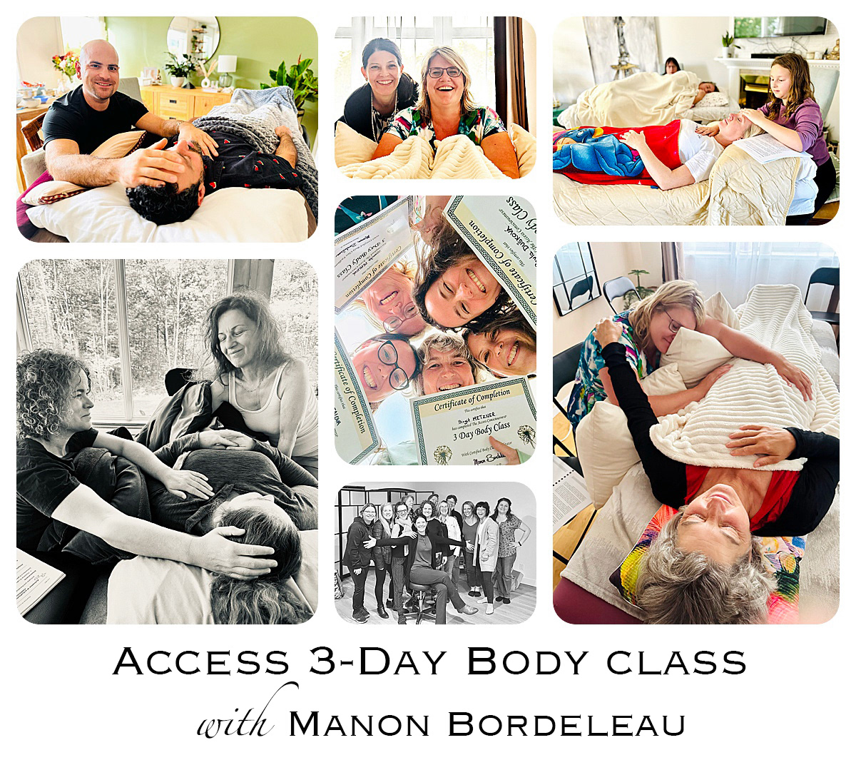 Suite à cette classe, vous serez praticiens de ce processus corporel et pourrez l'utiliser avec vos clients, famille, amis, ainsi que pour vous-même.